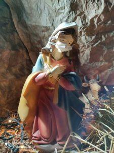 In tempi di Covid anche le statuine del presepe devono adeguarsi alle rigide norme per prevenire la diffusione del Coronavirus. E così i protagonisti del presepe realizzato presso la parrocchia di Santa Lucia sono tutti dotati di mascherina, rispettano il distanziamento e lanciano messaggi a tutti,indossate la mascherina e abbiate cura di voi e degli altri per evitare il contagio.