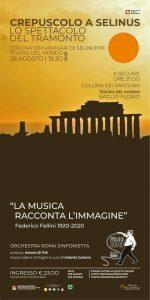 Mercoledì 26 agosto alle 21, nel magico scenario del Parco archeologico di Selinunte “La musica racconta l’immagine” con un concerto presentato dall’Associazione Roma Sinfonietta, storica orchestra di Ennio Morricone, in occasione del centenario dalla nascita di Federico Fellini, con musiche originali di Nino Rota. Il concerto, un grande evento in esclusiva ed unica data per la Sicilia, rientra tra le grandi iniziative di valorizzazione del Parco Archeologico di Selinunte Cave di Cusa e Pantelleria.