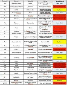 In provincia di Caltanissetta nessun problema per la spiaggia fronte foce del torrente Rizzuto a Butera, mentre risulta fortemente inquinato il punto sulla foce del fiume Gattano a Gela. Nel ragusano il punto campionato sulla foce della Fiumara di Modica nel territorio comunale di Scicli è risultato “fortemente inquinato”, così come anticipato due giorni fa da Legambiente in occasione del blitz sulla foce stessa. Agrodolce il bilancio in provincia di Siracusa, con la foce del canale Grimaldi nel capoluogo risultato “fortemente inquinato” e la spiaggia del Granatello ad Augusta con parametri entro i limiti previsti dalla legge.
