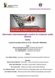 Al programma, infatti, danno il proprio contributo molte Associazioni che operano nel sociale, alcune intervenute al Carmine con proprie rappresentanti: Francesca Parrinello (“Casa di Venere”), Alessia Noto (“Comitato Pari Opportunità Ordine degli Avvocati”), Antonella Genna (“Fidapa”) e Mariangela Patti (“Metamorfosi”). La Mostra fotografica si potrà visitare fino al prossimo 6 Dicembre, giornata della premiazione dei vincitori del Concorso. Intanto, un altro appuntamento è in programma per questo pomeriggio al Tribunale (ore 15:30, ingresso da via Del Fante), con il Convegno “Violenza di genere e linguaggio d'odio: dalla carta stampata ai social media”.