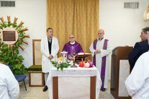 Ma, con l’ironia che lo contraddistingue, si concede anche il tempo di scherzare e chiacchierare con le persone che incontra, perché la gioia solleva i cuori come la preghiera. Accompagnato dal cappellano don Antonino Favata per scale e corridoi e scortato da un gruppo di volontari, il Vescovo ha percorso l’Ospedale in lungo e in largo, accolto da medici e personale sanitario, prima di giungere in Cappella per la Celebrazione Eucaristica, che è il momento centrale della giornata. Il 18 dicembre ricorre anche l’anniversario (quest’anno il secondo) della consacrazione dell’Altare della Cappella “Gesù confido in Te”, pietra che diventa il luogo sacro su cui offrire le preghiere, le suppliche e i ringraziamenti di chi transita in ospedale.