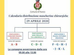 Inizia questa mattina, per proseguire domani (giovedì 30 Aprile) in base all'ordine alfabetico, la consegna delle mascherine di protezione alle famiglie di Paceco, attraverso tre punti di distribuzione allestiti in altrettanti locali comunali, suddivisi per iniziali di cognomi.