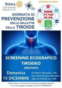 Domenica 15 dicembre, un'altra attività del Rotary Club Partanna a servizio della comunità per la prevenzione delle malattie. Lo screening è gratuito, ma considerata la possibilità di effettuare un numero limitato di visite, è necessario prenotare tramite WhatsApp al numero 3450895370. Partanna (TP) - Via Vittorio Emanuele n. 226. ang. Piazza Falcone e Borsellino. Dalle ore 9:30 alle ore 13:00.