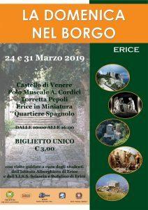 Con l’arrivo della primavera torna ad Erice l’iniziativa “La Domenica nel Borgo”, a cura dell’Assessorato Turismo e Cultura del Comune di Erice in collaborazione con gli Istituti IPSEOA “Ignazio e Vincenzo Florio” e I.I.S. “Sciascia e Bufalino” di Erice. La città di Erice, socio onorario dell’Associazione “I borghi più belli d’Italia”, come già lo scorso anno, per due domeniche successive, aprirà infatti ai visitatori le porte dei siti culturali comunali, il Castello di Venere, il Polo Museale “A.