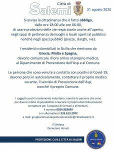 Sono in contatto continuo con l'Asp di Trapani che ha già eseguito numerosi tamponi, i cui risultati arriveranno nelle prossime ore». In allegato l’unico avviso valido che contiene le principali regole da seguire quando ci si trova in spazi pubblici, in caso di rientri da Grecia, Malta e Spagna e in caso di contatti con persone positive. Troverete anche un indirizzo mail a cui inviare la scheda censimento nei casi di autoisolamento. Sia l'avviso che la scheda sono scaricabili dal sito del Comune di Salemi, nella sezione 'Emergenza Coronavirus'.