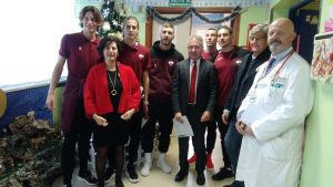 “E’ sempre bello regalare un sorriso in prossimità delle festività natalizie, specie se si tratta di bambini. Lodevole l’iniziativa di portare alcune ore di spensieratezza ai più piccoli: un’esperienza a cui sono stato ben lieto di partecipare insieme ai miei compagni”, ha detto Andrea Dini, portiere della squadra di calcio.