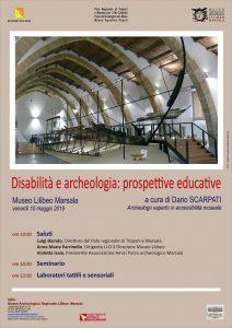 Venerdì 10 maggio alle ore 10.00, il Museo archeologico regionale Lilibeo promuove, in collaborazione con l’Associazione Amici del Parco Archeologico di Marsala, un seminario sul tema Disabilità e archeologia: prospettive educative, tenuto da Dario Scarpati, archeologo esperto in accessibilità museale.