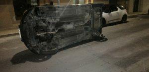 Trapani, rocambolesco incidente in via Vespri: auto si ribalta